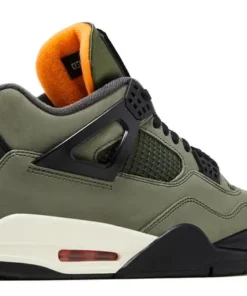 air jordan 4 undefeated stands as one of the most coveted and influential sneaker collaborations in history. First released in extremely limited quantities, this iconic model blends the legendary Air Jordan 4 silhouette with Undefeated’s military-inspired aesthetic. The upper features premium olive nubuck paired with black and orange detailing, creating a rugged, tactical look that has made this pair a grail among collectors.